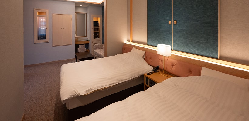 2階は落ち着いた洋の空気が漂うツインベッドルーム。