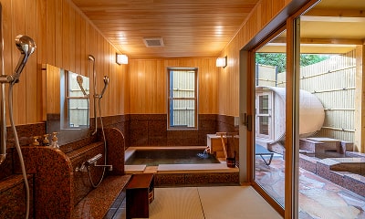 露天風呂は自然の風を感じながら湯に浸かる開放的な空間。