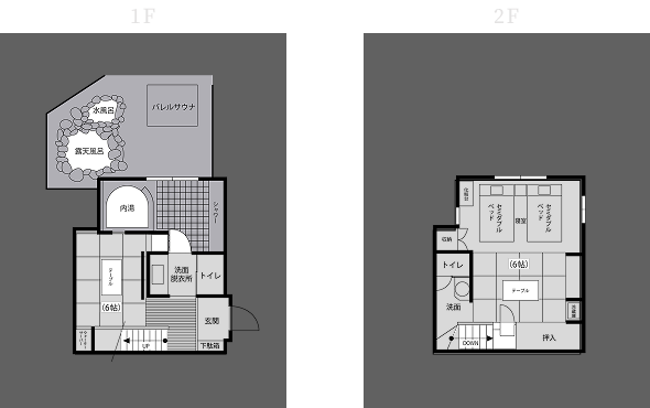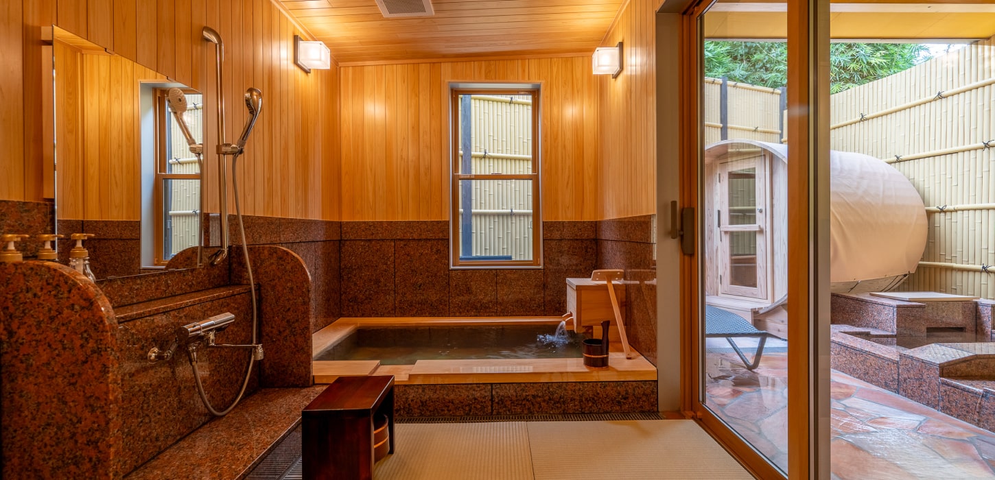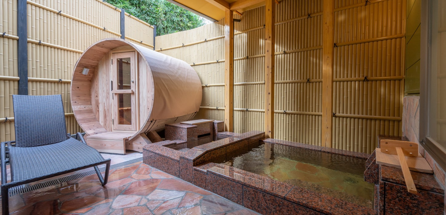 湯と整いを存分にお楽しみいただける離れ客室です。