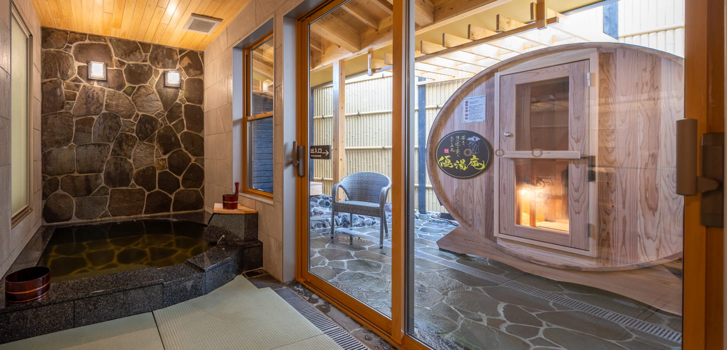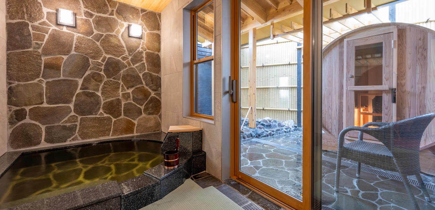 露天風呂と内風呂、そして専用バレルサウナまで備え、 湯と整いを心ゆくまでご堪能いただけます。
